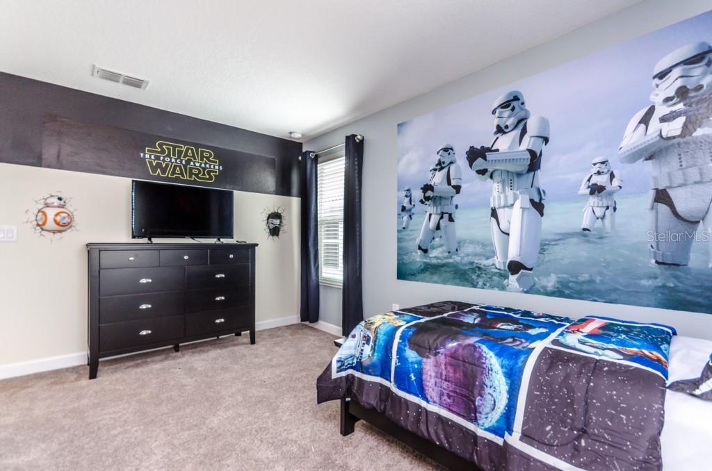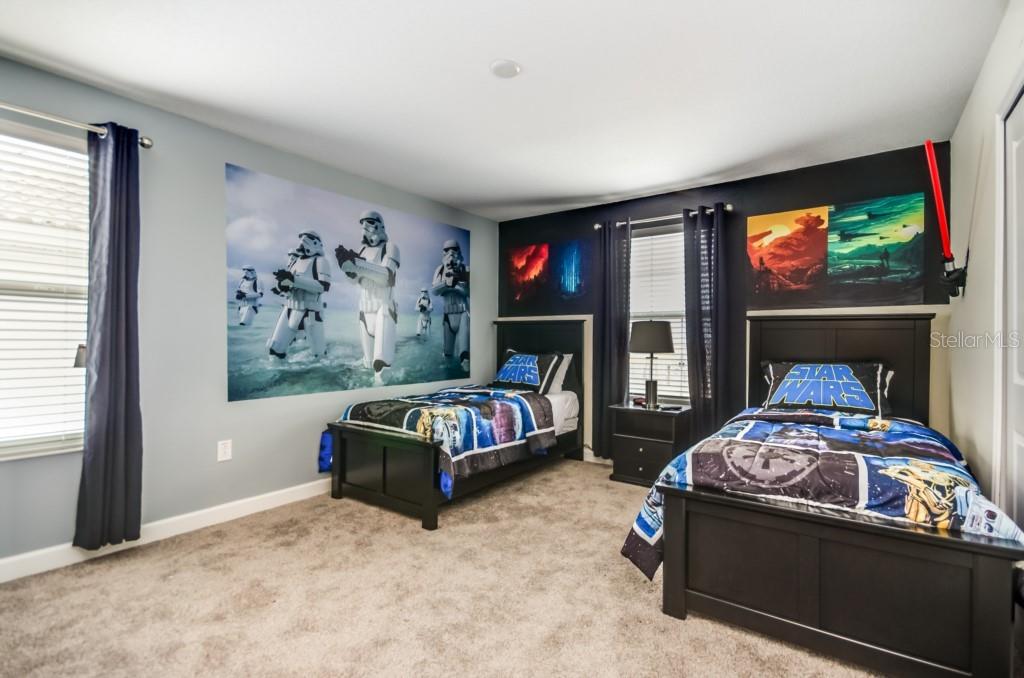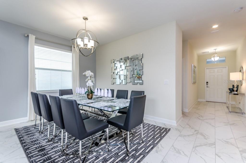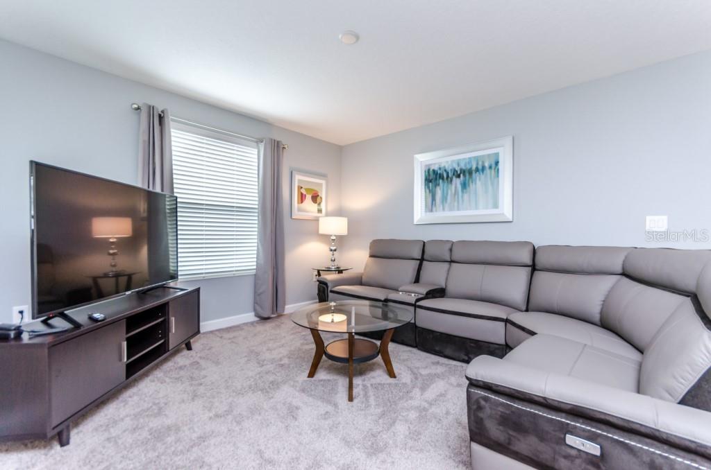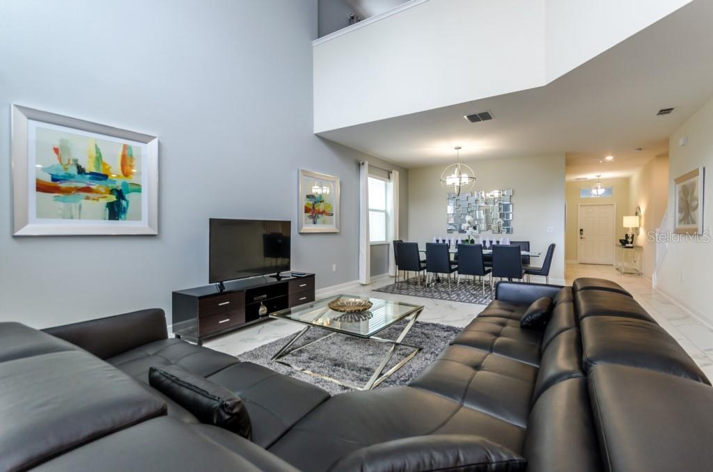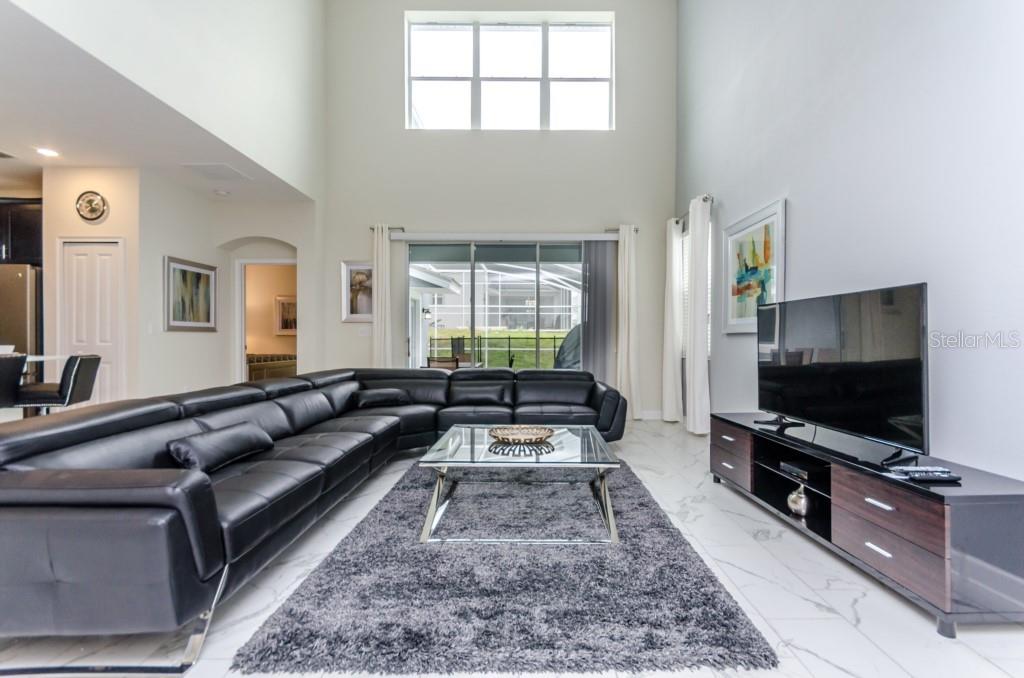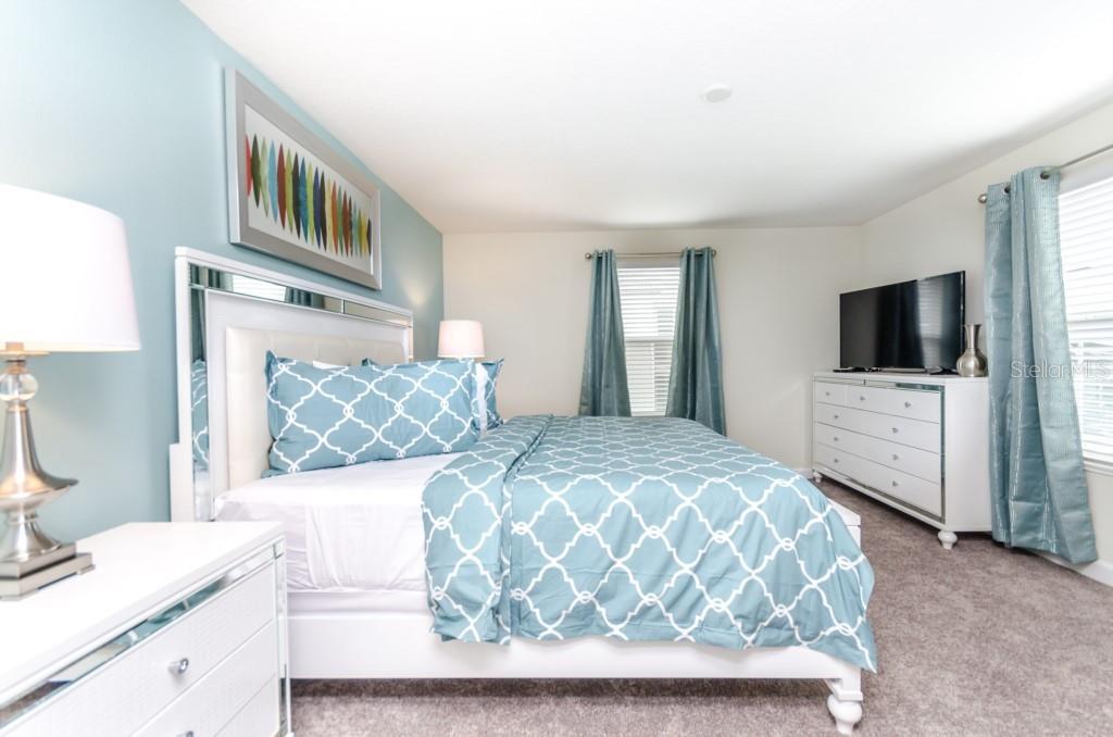Welcome to this luxurious vacation home in Championsgate! Two spacious master bedrooms, a bonus room, and a game room . The beautiful kitchen features 42″ cabinets, stainless steel appliances, and Quartz countertops. Step outside to a covered patio and screened pool and spa.